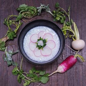 1月7日は人日の節句。 この日に七草粥を食べる事から七草の節句とも呼ばれます。 胃腸を休め、冬に不足しがちな青菜で栄養を補い、一年の無病息災を願います。 赤いスズナで可愛らしく盛り付けてみました。