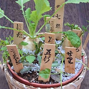 ~春の七草~ 芹なづな 御形はこべら 佛の座 すずなすずしろ これぞ七草 古い短歌があり、作者は四辻の左大臣と言われていますが、分かっておらず作者不明です。 因みに秋の七草もあり、こちらは観賞して楽しむ植物です。