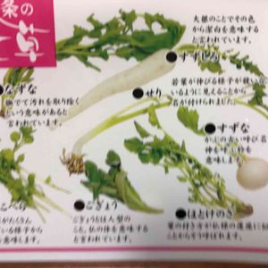 1/7日は、七草の日。 お正月のごちそうなどで、疲れた胃腸をいたわって、この日に七草粥を食べることで、新年の無病息災を願う行事です。 この写真はお出かけ先で撮影しました