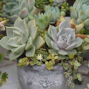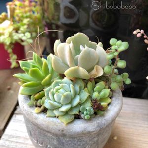 多肉植物寄せ植え55 1月のリバスタさんで、 ぼたんさんのワークショップの寄せ植え もりもりになってます💕