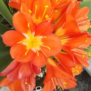 ■Clivia miniata 'White variegated' ・クリビア ミニアタ ‘ホワイト バリエガーテッド‘ 白黄斑入りのクンシラン(君子蘭)、咲きました。黄花だったらいいなぁと思ってましたが、普通にオレンジでした。 最高気温12℃、最低気温-1℃