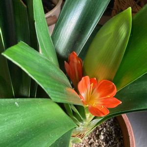 去年秋にお花屋さんでショボショボだった子、土を替えて様子を見てました そして、咲き出しました😊💕良かった〜 でも、君子蘭って本来なら咲くのは、春?夏? よく分からなくなってきた❓❓