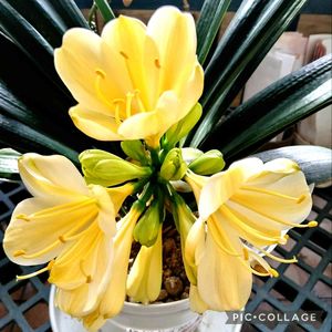 クンシランといえばオレンジ色(2枚目)というイメージでしたが 皆さんの投稿から違う色もあると知り 先日ホームセンターでイエローカラーのクンシランに出会いました💛 実物を見られてワクワクです😊🎶