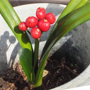 この冬を越し、実が真っ赤に熟した君子蘭です。 来る3月には種まきします。