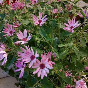 花壇のオステオスペルマムちゃん💗 たくさん咲いてきて、蕾もいっぱい。 鉢植えの子を 冬場は陽当たり夏は日陰になる落葉樹の足元に引っ越しさせたら、写真の数倍広がって咲いてる☺️ヤッター😍
