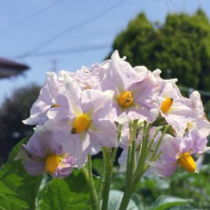 家の前の畑にジャガイモのお花がたくさん咲いてきました〜🥔 ピンクが可愛い❣️