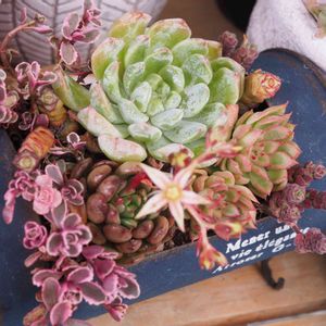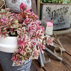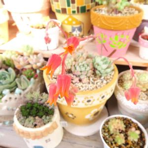 5月に寄せた多肉さんピンクルルビーが花を咲かせました、トリカラーも色が綺麗になってます🥰