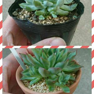 エケベリア 葉挿し その3 覚え書きから葉挿しの名前タグ付けてみましたが、間違ってるかもしれません 日当たりがイマイチなところに置きっぱなしだったので1年3ヶ月経過しても小さめで緑 土は鹿沼土 この鉢は最初から成長鈍かったので葉挿しの土は栄養ある土の方がいいのかも
