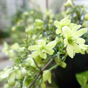 淡いグリーンからオフホワイトの花を咲かせる常緑小型のクレマチス✿.・。* 垂れて咲くので、ハンギング仕立てにおすすめ (*ˊᵕˋ*)੭ ੈ❤︎ 半日陰の我が家には、ぴったり🎵 以前、カートマニージョーの夏越しを失敗して枯らしてしまったので😓 ペトリエイも、夏越しが課題( ̄~ ̄;),,, (2021.3.20 植え付け)
