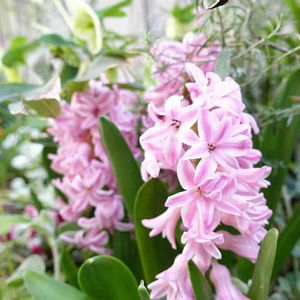 深秋に仕込んだ球根類が咲き始めています🌱 優しいピンク色のヒヤシンス(*´▽`*)❀ 小さな庭に、可愛らしい春の訪れを告げてくれています🎵