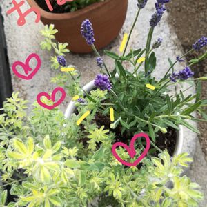 イングリッシュラベンダーほのか💜です。カンカン照りでも大丈夫💪とのことで、強い子なのかな?夏も楽しみにしています✨🌞💕 春に植えたお花をどんどん弱らせてしまい、落ち込みました。夏はお花の数を控えめにして…、と考えていたのに、やっぱり増えていきます😅