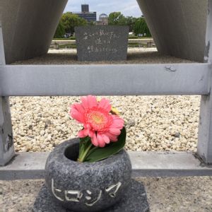 20数年ぶりに広島平和記念公園へ🍀 ガーベラの奥には原爆死没者慰霊碑とその真っ直ぐ奥には原爆ドームが見えています🌸 平和記念資料館も入館しましたが、展示の方法はかなり変わっていました。 同じものでも今、見てみると、受け止め方が違うことを感じました😿