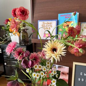フラワーフェスティバルかがわ2023 (サンメッセ香川にて) 香川県産のお花をPR 花器とお花を自由に選んで花生け体験 普段出来ないダイナミックなのを と思いましたがなかなか難しい😄 最初 雪やなぎを左に入れていましたがクルクル回って安定しない 思い切って右に変えてみたらとまった 枝の向きがあるのね🌿 雪やなぎ💮 ドラセナ🌿 ベビーハンズ🍀 赤ちゃんの手みたいな可愛い葉っぱ 使い勝手が良さそう😄 変わり咲きのガーベラパスタ🏵️ ラナンキュラス🌸 カーネーション🌼 お花は持って帰れません😅 大盛況 次の方が待っているので 写真を撮ったら交代 慌ただしい中 集中出来たかな😆 楽しいイベントでしたo((*^▽^*))o