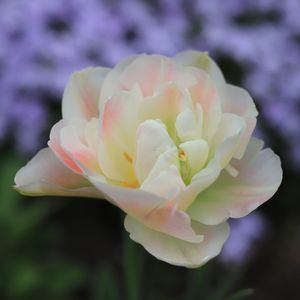 チューリップ アンジュリケ 📷小さな庭の花壇 (4月21日) 淡いピンク色のカスリが入る美しい八重咲きチューリップです(//∇//)🍊