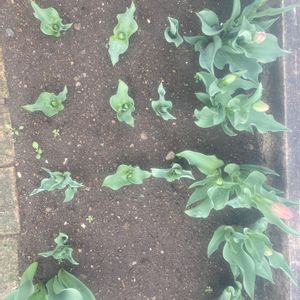 3/25 チューリップ🌷が、早いのは蕾になり、咲きそうです。皆、芽🌱を出して、育ちそうです。