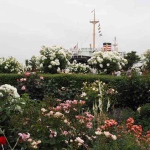 横浜ガーデンネックレス。山下公園にて、薔薇の向こうに氷川丸が見えます❗