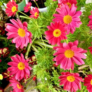 マーガレット・シンプリーコーラル 花数も増えて元気に咲いています😊 今はコーラルというよりビビット、鮮やかな発色が目を惹きます✨
