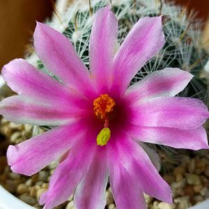 おはようございます😅 ブーリーです😍 マミラリアにしては大きな花です😅 本体より大きな花🌸を3花着けました😍