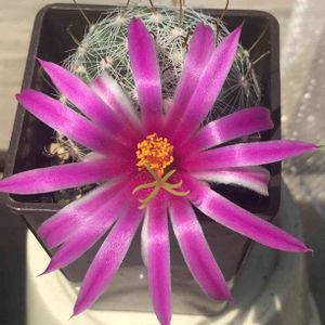 こんにちは✨😃❗ マミラリアブーリーが咲きました🌵🌸😅 マミラリアでは珍しく雌しべの先端が緑色です❓😅 エキノケレウスみたい❓😅 花びらの裏側は白です😅 蕾の時は白花が咲くのかな❓😅と思ってしまいます❓😅