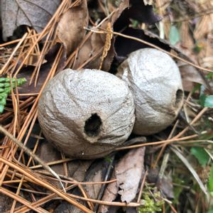 10/25 群馬にて。タヌキノチャブクロ。キツネノチャブクロことホコリタケの幼菌に似るが、朽木に生えツルッとしていて根本が細いので区別できる。 可食時期が短いけど個人的にはとても美味しいと思う。特に食感がムキュう〜と、いう感じでなんとも言えない。
