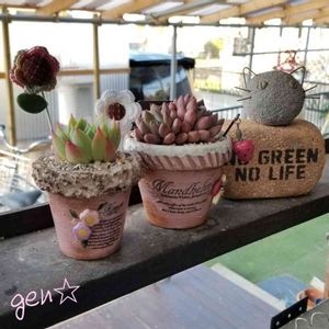 おはようございます❣ 今日は雨予報でしたが夜からになるそうで、昼間は大丈夫みたい😊 今日はイベント!! 長女がはりきって「げんちゃんは私が追っかけるから、母さんは楽しんで❣」などとステキなことを言ってくれるので、ありがたく楽しんでこようと思います(o´罒`o) ある日木箱を塗り塗りしてるときに、チビげんが僕もやりたい!と言うので、適当な木っ端をあげて色塗りさせてました😊 頑張って塗った端材をなんとか組んで木箱にしたのが、今日のpicデス(*≧艸≦) 右の雪だるまもチビげん作品🌸 先週ancoちゃんと行った サボテンミサイルからお迎えしたトゲトゲユーフォルビアと小さな幻楽さん入れたら、まぁなんだかお気に入り💓💓💓💓 チビげんもとっても嬉しそーでした(●´ω`●) kaorioka2ちゃんのpostで見た ぶつぶつトゲトゲごつごつのお祭り?こんなんでどーかしら(*≧艸≦) さてさて、準備していってきまーす😁😁😁