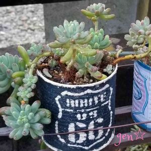 おはようございます❣️ チビげんちゃんの定期受診でお休みです😁😁😁 今日はゆっくりの予約なので、朝からチビげんに邪魔されながらも自作のリメ缶にチマチマ💛💛💛💛 葉挿しっ子たちが元気に育ってくれてたので、ふんだんに使いました〜😊 今日は木箱たちの仕上げも終わらせる( ー̀ωー́ )و