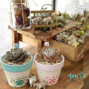 おはようございます❣️ 今日は長女の三者面談のため、お休みを頂きました! チビげんも保育園に行き!! なんと❣️なんと❣️ おひとりタイム〜(゚∀゚ノノ"☆パチパチパチ★ 少しお片付けをして、多肉ちゃんと戯れています❤ なんかいいのかな〜💦と罪悪感𐤔𐤔 午後には憂鬱な三者面談が待っている!今を楽しもう!! 受験生、何を言われるか('-' ).........💦 気を取り直して。 picはizumiちゃんにオーダーお願いした花ねずみ鉢💕💕💕 minneで購入しました🎶 とーってもかわいい癒され鉢です!! 美味しい手作りお菓子も頂きましたが、直ちに娘たちに食べられてしまいました( ºωº ) COCOETNICOさんの苗を入れるとキャ───(*ノдノ)───ァかわゆい💕💕💕 今日はのんびり過ごせるといいなー♥