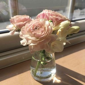 窓辺に… ラナンキュラスとフリージア❤︎ 白フリージアは甘くて繊細な良い香りです♪