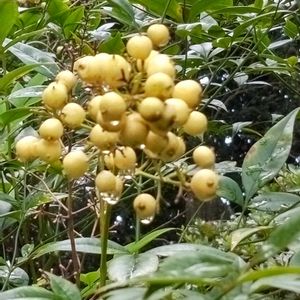 シロナンテン メギ科ナンテン属 今日のお花、白南天の実。