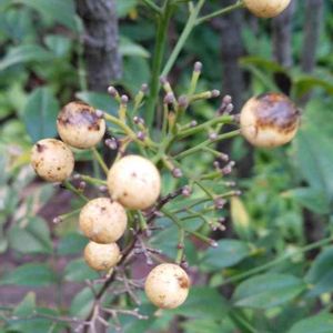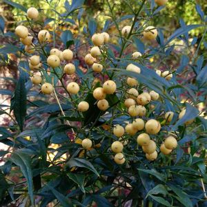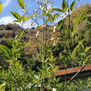 白い南天の実 初めて見ました‼️ 温泉♨️宿の側にありました。 マンリョウの実などの様に、紅白でなるのが沢山あると気が付きました。 探してみるのも面白そうです😁❣️