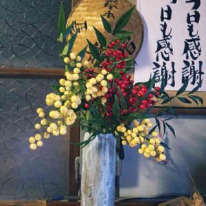 実家の母作です。ほとんど庭で育てたものや、親戚からもらったもの。 今回、赤い南天は出番なし。 「せっかくの千両を引き立てないとね」と母。 なるほど。