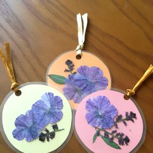 ペチュニアとリシマキアボジョレーの栞です🌼 自分の日記帳と本に😊 作成に3時間くらいかかってしまいました🔖