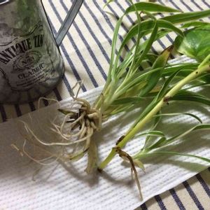 年末にわけてもらったポトスから根っこが♡ 嬉しい〜(^^)オリヅルランはどんどん伸びて増えるからあちこち飾ってます(^o^)/