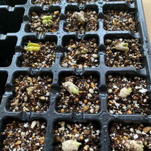 コットン。種まきから6日目。 発芽して勢いよく土から飛び出してきました😆元気が良い👍🏻