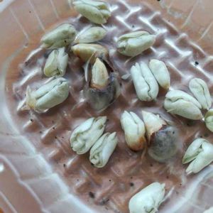 しまいっぱなし2の 綿花の種 大丈夫かなぁとムキムキしてみた。 面白いかたちしてる。 ほぼダメになってたけど、大丈夫そうな子達をとりあえず水に。