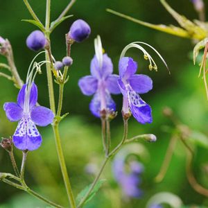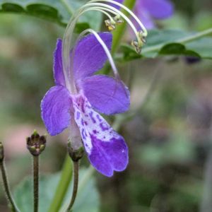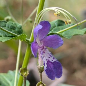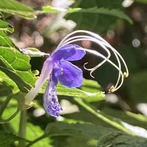 カリガネソウ(シソ科) カリガネソウ属 興味津々だったカリガネソウ~今年も、花友さんのお庭から2週間前に頂きました‥🪴 今朝、やっと開花デス‥ヽ(=´▽`=)ノ!! 早起きして良かった‥👏👍️ 蕊がツンツン~‘’帆かけ舟‘’に見立てた別名の…ホカケソウも好き‥💓 こんなに美しい姿のお花が野に自生しているなんて~ワクワクしますよね‥👀!!