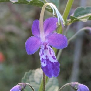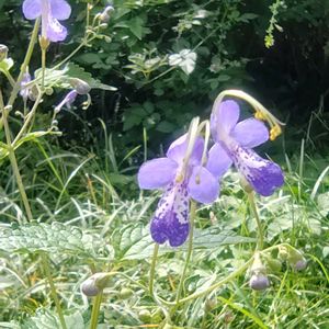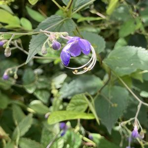 昨年12月に見切り品でお迎えした、斑入りカリガネソウ スノーフェアリー🌿 我が家で初開花しました💜 蝶🦋みたいで、可愛い🥰 半日陰でいいので、裏庭にいます♪