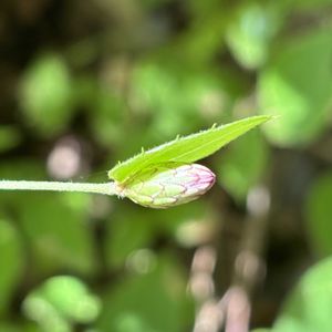 カリガネソウ(雁草)シソ科カリガネソウ属 山の公園のピンクのカリガネソウが咲きました。 これは管理人さんが植えたものです。 紫色は見たことありますが、ピンクは初めてです。 カリガネソウの和名は花の形を飛ぶ雁に見立てたもの。 茎は4稜形、大きくなると木質化する。葉は無毛、対生し、長さ8~13㎝の広卵形、葉質は薄く、普通、縁に鋸歯があり、先が尖る。花冠は2唇形、長さ8~10㎜の白い筒部があり、下唇は3裂し、上唇は2裂し、裂片は開口する。下唇の中央裂片は大な、あごを突き出した形をしている。雄しべ4個は長く、花柱1個とともに花冠から上へ突き出て、下側へ湾曲する。 🏷 金曜日の蕾たち