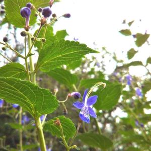 向島百花園にて カリガネソウ(雁金草) シソ科の多年草、別名ホカケソウ(帆掛草) 📷 2019.9.24 今朝ほどのクイズの回答はアシタバでした。 普段食べるのは葉の部分なので花を見ることがないと思います。 私も分かりませんでした。