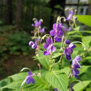 薄紫の可愛らしい花が咲いていました 今年の春にご近所さんからいただきました 初めて見るお花です。 カリガネソウ💜 別名ホカケソウ(帆掛草)