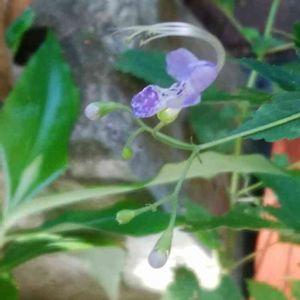 💜カリガネソウ💜 今年もカリガネソウの花がヒラヒラ🦋飛び出しています😆🎶 頭の上にピョンピョン伸びているヒゲが何とも可愛くて😆💕 でもカリガネソウ💜は触れると臭い😫 だからお庭の手入れの時は、触れないように、そ〜と☝️そ〜とね☝️😁