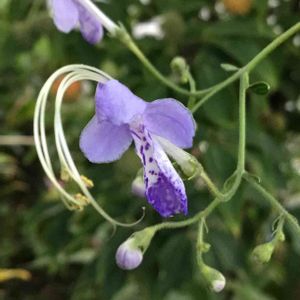 長い雌蕊と雄蕊がくるりん😲 面白い花姿のカリガネソウです😊