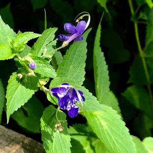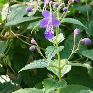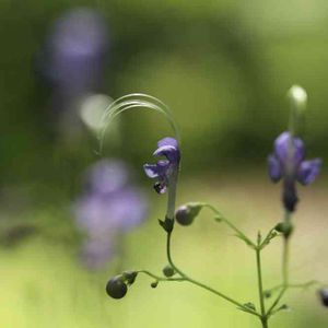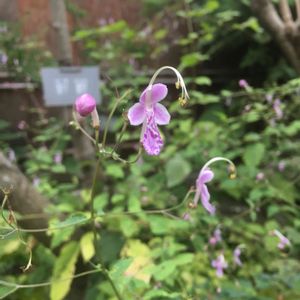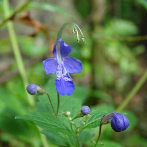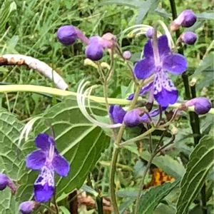 カリガネソウ(雁草、雁金草) この花が見たくて、☂の中を散策してきました。 はじめましてのお花。 花の形も、雄蕊がクルンとなっているのも、蕾が♩みたいなのも、みーんな可愛い♡