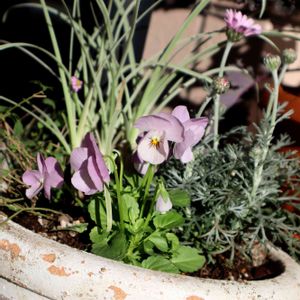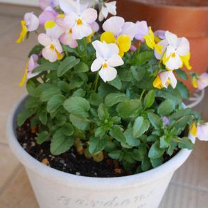 乙女な色合いのローダンセマムさんとビオラさんをお迎え。 久しぶりに陶器鉢を引っ張り出したところ、 中にカマキリの抜け殻が入ってました(´-`)