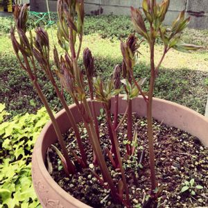 シャクヤク:今年も大きな花が咲く事を期待✨ スノーフレーク:スイセンの花が終わったタイミングで咲いてくれてナイス👍 ムスカリ:2年間放ったらかしで久しぶりに花を咲かせてくれました🥹 スズラン:シクラメン植えてるのお構いなしで今年も至る所に芽を出して来ました🌱恐ろしい繁殖力😱