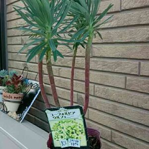 先日一目惚れして購入したユーフォルビア✨😍✨ 350円の20%OFFでGET🎵 木立がいい感じ😺