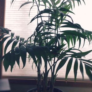 🌿テーブルヤシ🌿 朝のシルエットが綺麗💞 購入時15センチ程だったのに、どんどん大きく…今は50センチ位になってます😆 もうテーブルには置けません💦