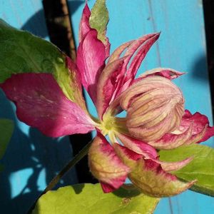 今日の花 クレマチス ✨花炎✨ 今年の4月29日の写真 花炎は蕾は茶色ががったシックな色でしたが、こんなに鮮やかに〜❤️