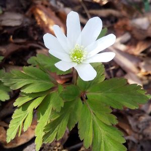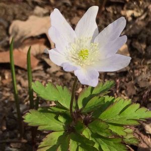 キクザキイチゲ(菊咲一華) キンポウゲ科イチリンソウ属の植物で早春から初夏まで咲くスプリング・エフェメラルです。菊のような花の茎に一輪のみ咲くのが特徴です。 スプリング・エフェメラル、直訳すると「春の儚いもの」 早春いち早く花を咲かせ初夏には地上から姿を消し、来年の春に向けて1年の大半を地中で過ごす植物の事を言います。 その可憐さから「春の妖精🧚♀️」とも呼ばれます。 スプリング・エフェメラルにはカタクリ、イチリンソウ、福寿草などがあります。 キクザキイチゲの花言葉は「追憶」 シーズンが終わると儚く消えるキクザキイチゲはほとんどの間、姿を思い出に偲ぶ形でしか見られません。 まさに、追憶の花です。