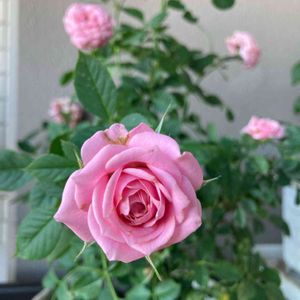 雨の水曜日☔ 10月4日にupした ミニバラ・コルダーナが咲き始めました🩷🌿 新芽の勢いもあり 蕾も沢山上がってきて 嬉しいです🤗